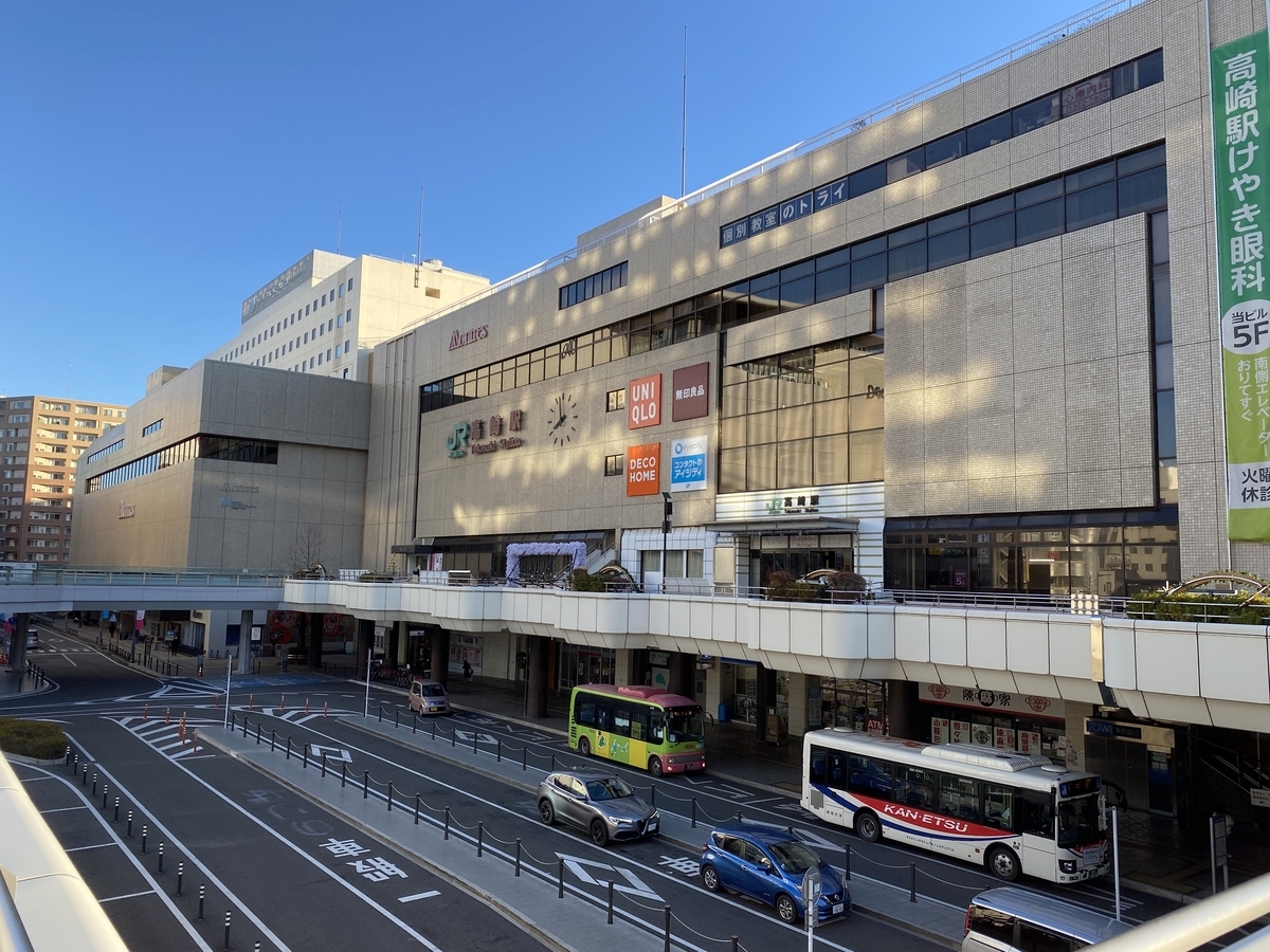 西口の様子ですが、西口は昔からある商業施設や市役所があり、なかなかの賑わいをみせています。高崎市役所の最上階には展望スペースがありますので、時間があるときはぜひ立ち寄ってみてください。駅から歩いて10~15分程のところにありますよ!